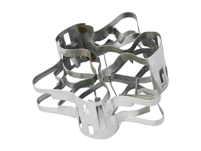 特点:由多褶金属薄壁围成的花环休,填料具有通量大,气液分布性能好,传质效率高的优点。